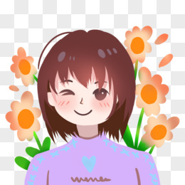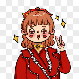 手绘可爱兔子小女孩开心眨眼wink表情包元素