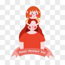 手绘卡通女孩蒙住妈妈眼睛免抠素材