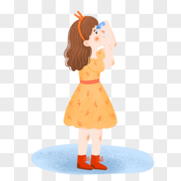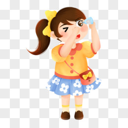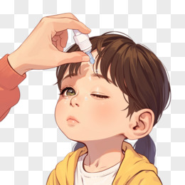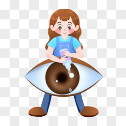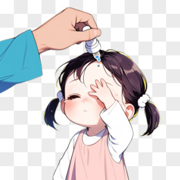 手绘小女孩给眼睛滴眼药水创意免抠素材