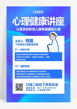 简约风蓝色卡通女护士心理健康讲座宣传海报医学