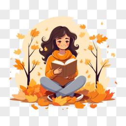 卡通一个女学生抱着书在书堆里看书免抠元素