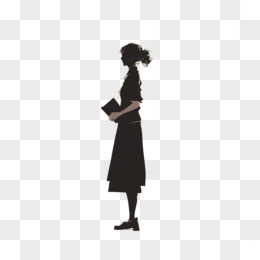 卡通风教师节抱着书本扎着马尾女教师黑色剪影免抠元素