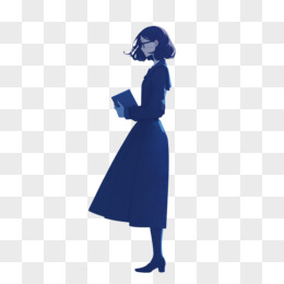 卡通风教师节抱着书本的女教师蓝色剪影免抠元素