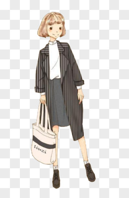 一组手绘插画风唯美女性四季穿搭全身合集之夏天穿搭素材