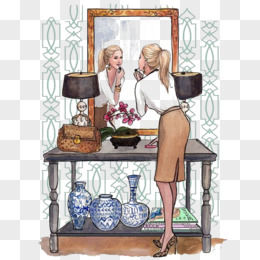 手绘插画古代放孔明灯祈福的女生免抠素材