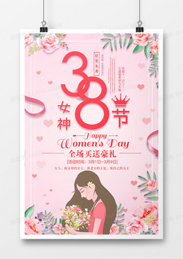 2019年三八女神节粉色浪漫清新促销宣传海报