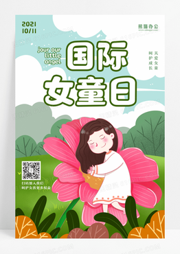 绿色卡通国际女童日保护女童宣传海报设计