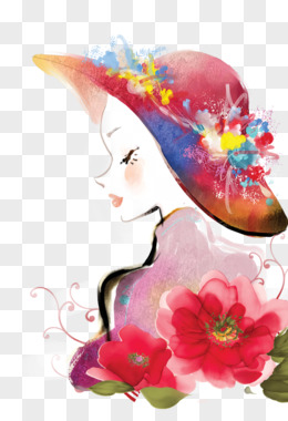 卡手绘女神节唯美女性形象元素元素