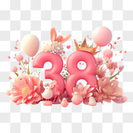 唯美鲜花金色皇冠粉色数字38妇女节艺术字