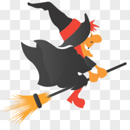 原创手绘万圣节骑扫把的猫和巫女剪影
