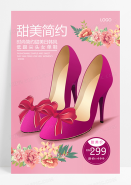 鞋子粉色浪漫甜美简约高跟鞋女鞋海报