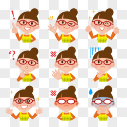 手绘卡通漫画女性人物眨眼的颜表情素材