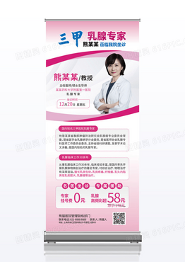 粉色创意大气三甲乳腺专家坐诊医师介绍医生简介妇科易拉宝设计医疗展架