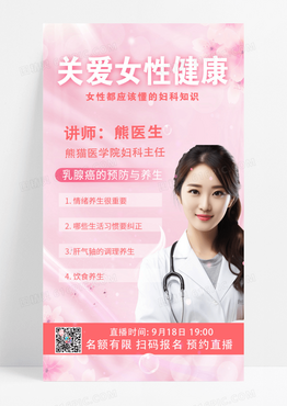 粉色关爱女性妇科健康直播预告海报粉色女性妇科健康直播手机UI海报