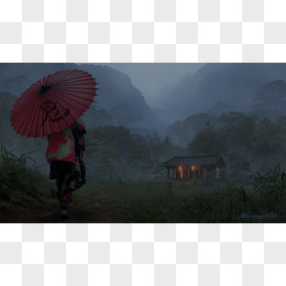 枫树红衣女子环境渲染合成