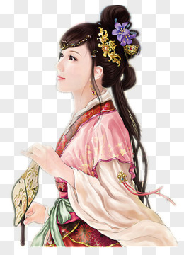 粉衣女子黄金头饰素材免抠素材
