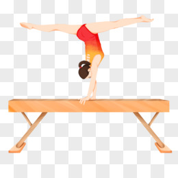 卡通手绘女子下腰做体操翻跟头免抠元素