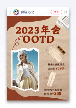 一组棕色学院风秋装穿搭合集肌理插画素材