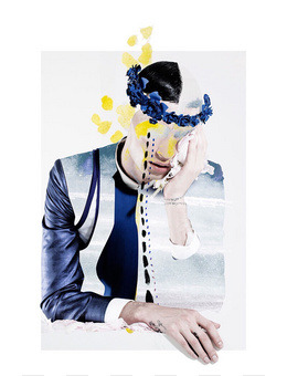 欧美模特人物造型烟雾效果的头发红色蓝色