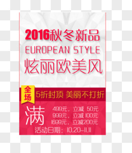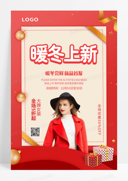 红色冬季女装欧美时尚冬天冬装上市女装服装促销海报