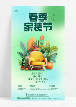 活动促销弥散绿色简约欧式家居创意春季家装节春季手机宣传海报