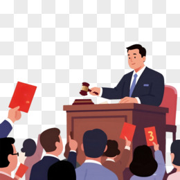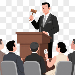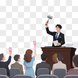 3D卡通穿蓝西服的男拍卖员举槌拍卖场景免抠元素