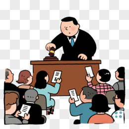卡通男拍卖员举着法槌下面举着号牌免抠元素