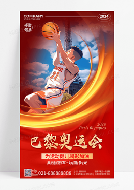 红色丝绸2024年巴黎奥运会手机宣传海报
