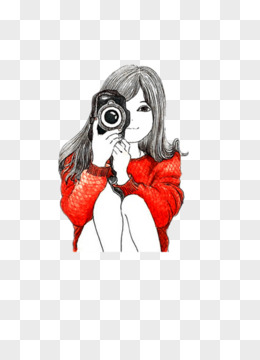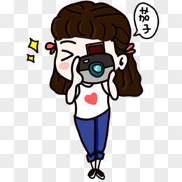 手绘卡通小姐妹摄影拍照采风免抠元素