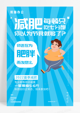 手绘简约清新蓝色扁平卡通夏季减肥海报