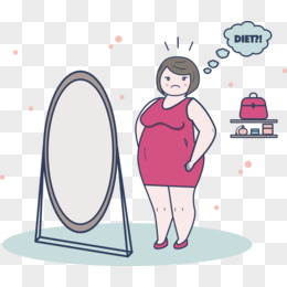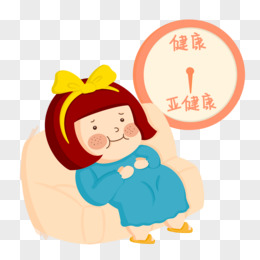 手绘卡通躺在沙发上的胖女孩免抠元素
