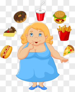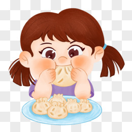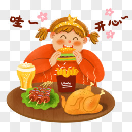 手绘卡通胖女孩吃东西的场景插画免抠元素