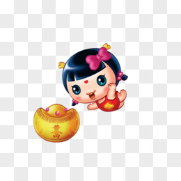手绘虎年新年可爱虎头帽小女孩免抠元素