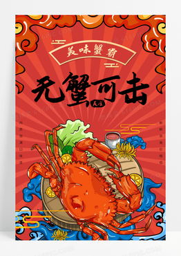 无蟹可击国潮螃蟹美食国风创意海报
