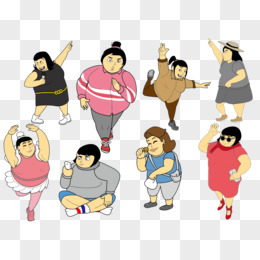 卡通手绘小胖妹减肥做瑜伽运动免抠元素
