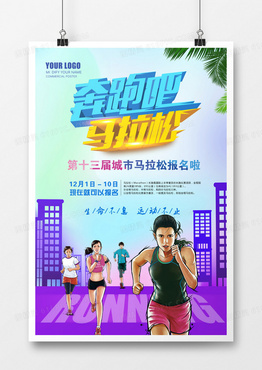 炫彩奔跑吧马拉松立体字海报