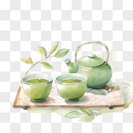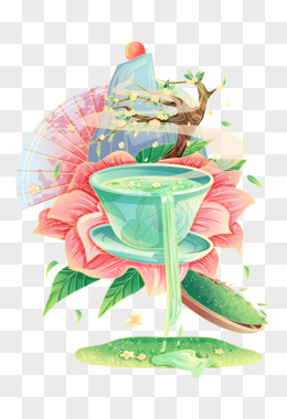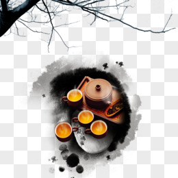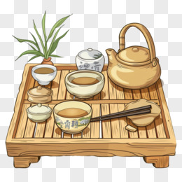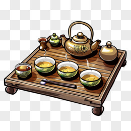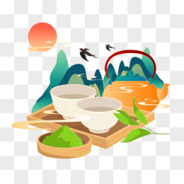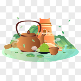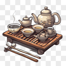 卡通手绘俯视图泡茶喝茶茶文化远古三