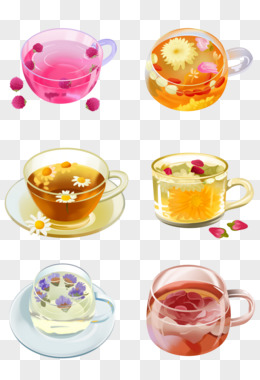 一组插画风各种花茶套图合集元素