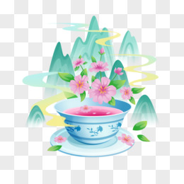 手绘插画风花茶微景观元素