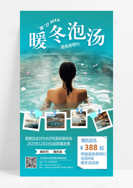 蓝绿色温泉泡汤温泉洗浴温泉酒店温泉SPA手机海报