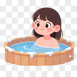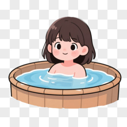 手绘卡通女孩儿们一起泡温泉免抠元素