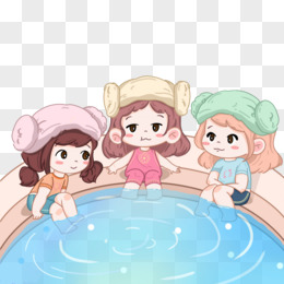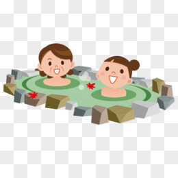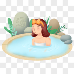 卡通女孩一起泡温泉免抠元素