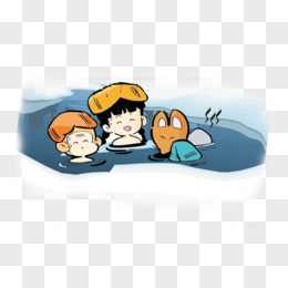 手绘卡通小朋友冬天一起泡温泉素材