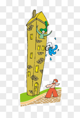 手绘卡通楼上丢东西砸到人场景免抠元素