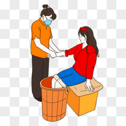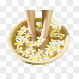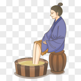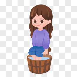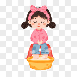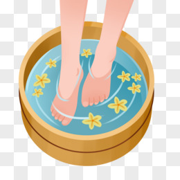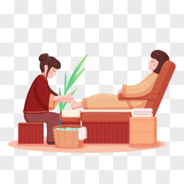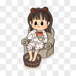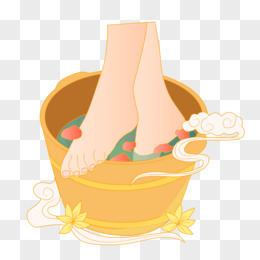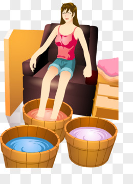 一组卡通漫画涂鸦风养生休闲活动免抠套图之泡脚按摩元素