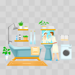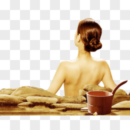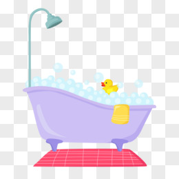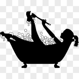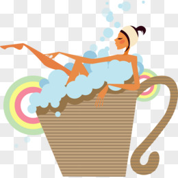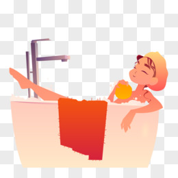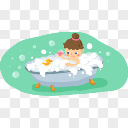 卡通手绘女孩在浴缸里泡澡免抠素材