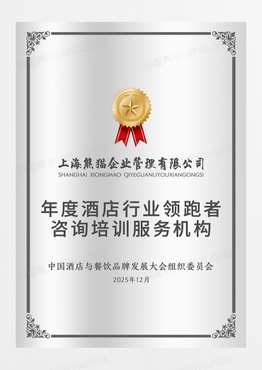 银色简约年度酒店行业领跑者荣誉证书铜牌
