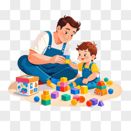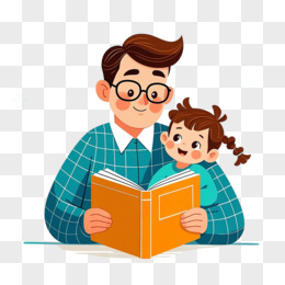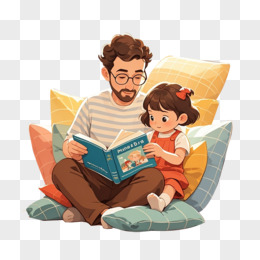 卡通插画风爸爸与孩子一起阅读免抠元素