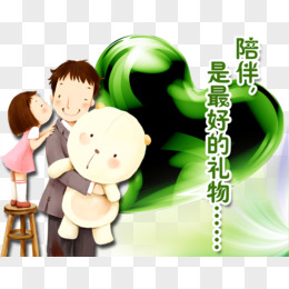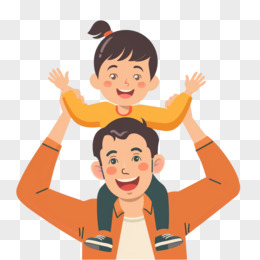卡通手绘爸爸愁眉苦脸辅导女儿免抠素材