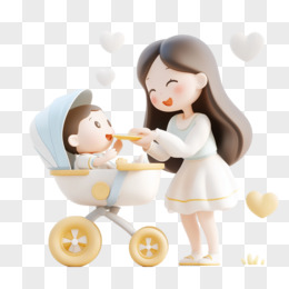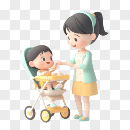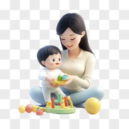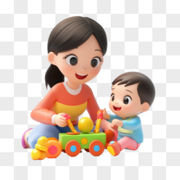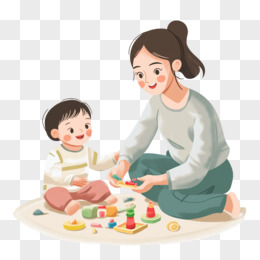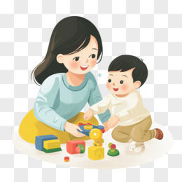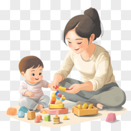 卡通手绘父母陪伴小孩子玩沙子免抠元素 AI元素 数字艺术